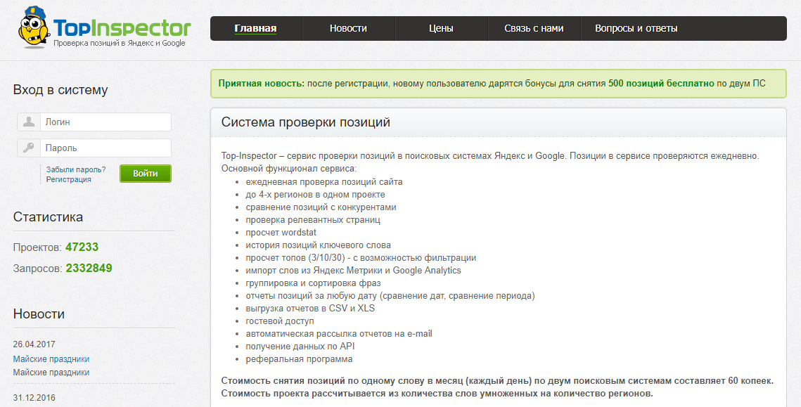 Цена – от 0,05 руб за 1 ключевое слово (проверка в рамках одной поисковой системы).