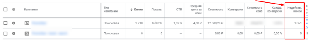 Из отчета по кампаниям в Google Ads можно получить данные о недействительных кликах.