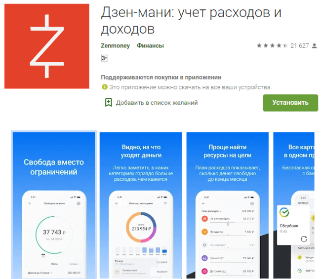 “Дзен-мани: учет расходов и доходов” – на сегодняшний день самый популярный сервис по ведению личных финансов. Можно пользоваться с любых устройств и синхронизировать данные с членами семьи. Рейтинг – 4,5 по отзывам более 21 000 пользователей.