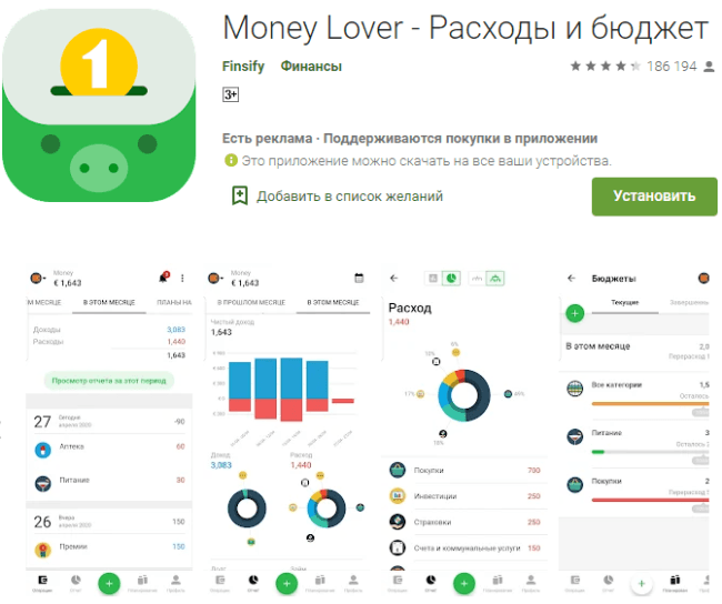 Money Manager имеет более 10 млн скачиваний. А рейтинг 4,3 по более чем 300 тыс. отзывов говорит о том, что как минимум эту программу стоит скачать и попробовать в деле. Последнее обновление в октябре 2021 г. Российские пользователи отмечают корявый перевод на русский язык интерфейса программы.