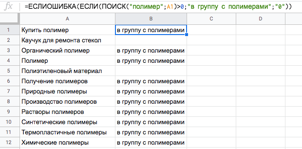 ЕСЛИОШИБКА — находим ключевики в строках, чтобы разбить на группы