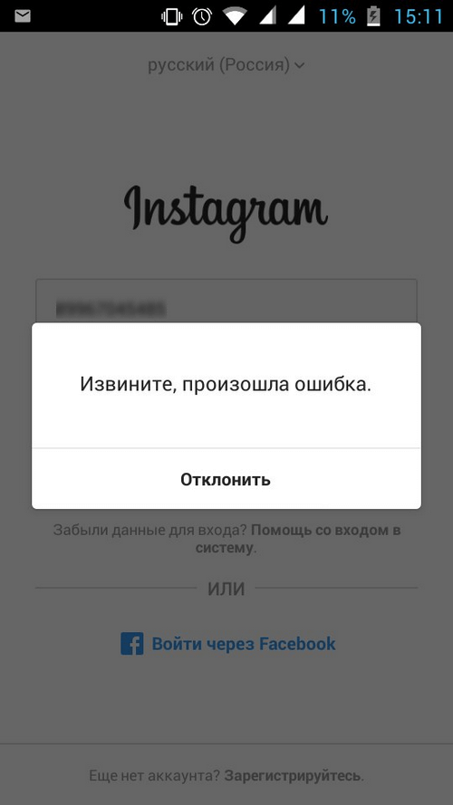 Что делать, если Инстаграм выдаёт «Извините, произошла ошибка» при входе?