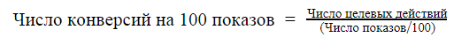 Показатель, отлично оценивающий качество приводимого на сайт трафика. Он объединяет в себе смысл двух известных нам метрик – CTR и коэффициента конверсии. Первая учитывает только людей, перешедших по объявлению, но «теряет» их после клика, а вторая, наоборот, оценивает только тех, кто уже на сайте. Число конверсий на 100 показов устраняет этот разрыв.