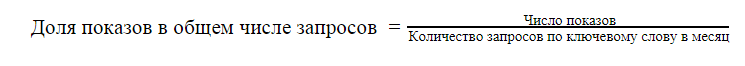Достаточно «амбициозная» метрика. Она показывает, какую часть из всех поисковых запросов пользователей за месяц вам удалось охватить своей рекламой. Если быть точнее, то не из вообще всех – а только из запросов с интересующей вас ключевой фразой.
