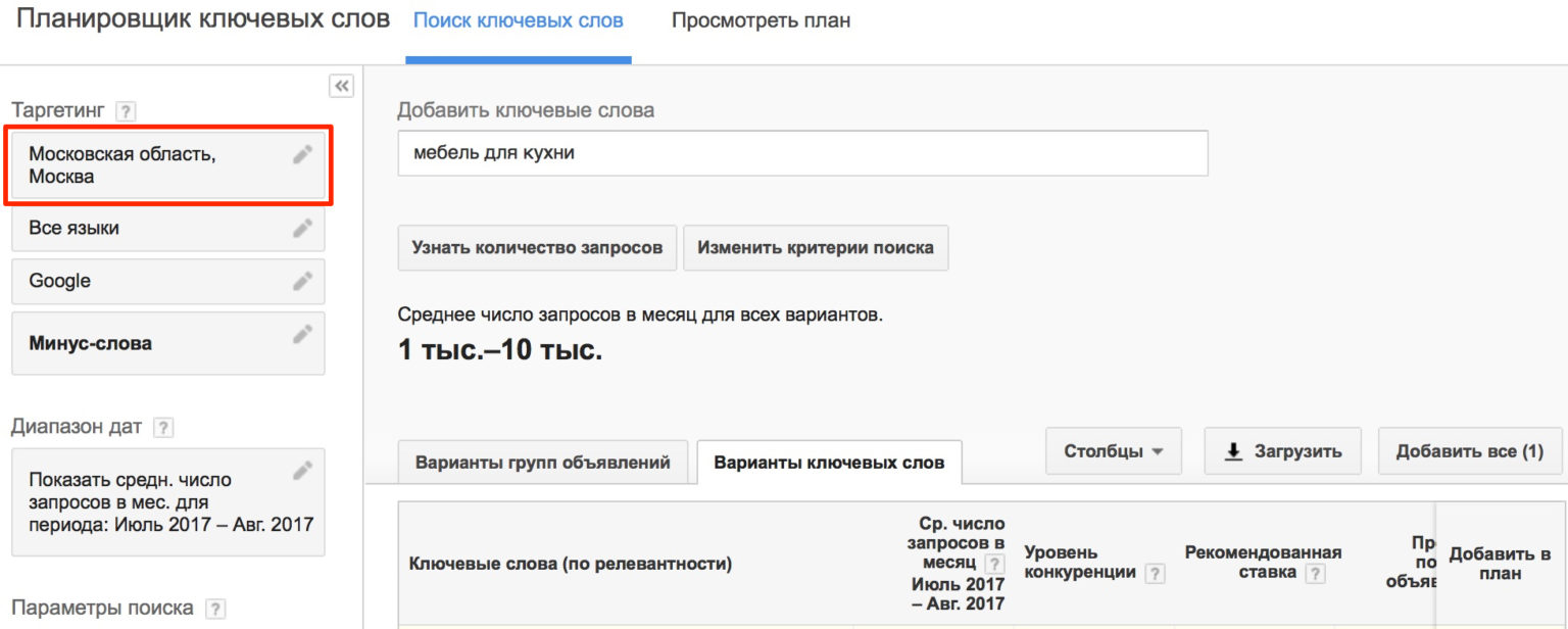 В AdWords есть похожий показатель – процент полученных показов. Но этот процент рассчитывается от числа возможных, по мнению Google, показов: учитываются настройки таргетинга, статус и качество объявлений и т.п. Мы же построим более прозрачную метрику, ограничив только геотаргетинг.