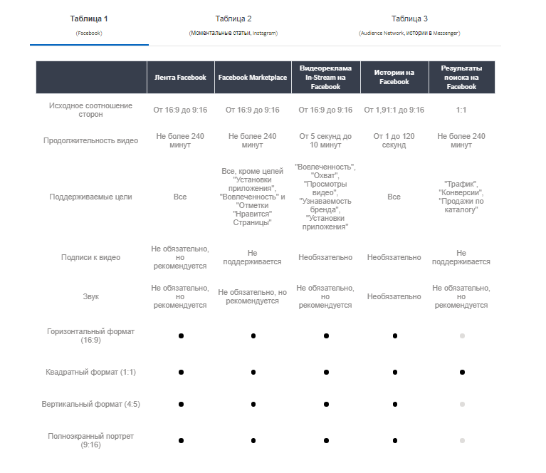 На любой из популярных площадок можно показывать ролики на мобильных устройствах, необходимо только оптимизировать их. Иногда рекламные платформы помогают в этом. Например, на Facebook* есть специальная таблица с требованиями к роликам в зависимости от места их размещения и формата.