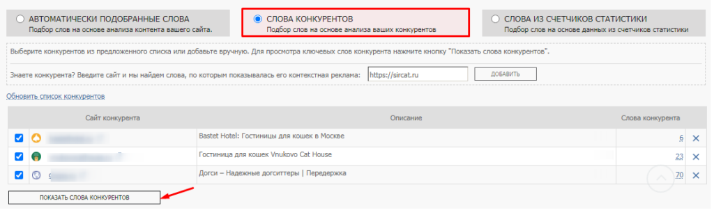 3. Отследите, по каким ключевым словам показывают рекламу конкуренты
