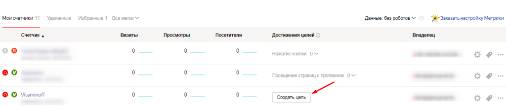 Установите Счетчик Метрики на сайт. В списке счетчиков найдите недавно созданные, выберите нужный счетчик и кликните на «Создать цель».