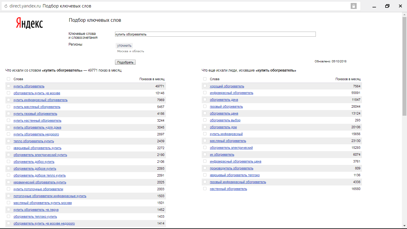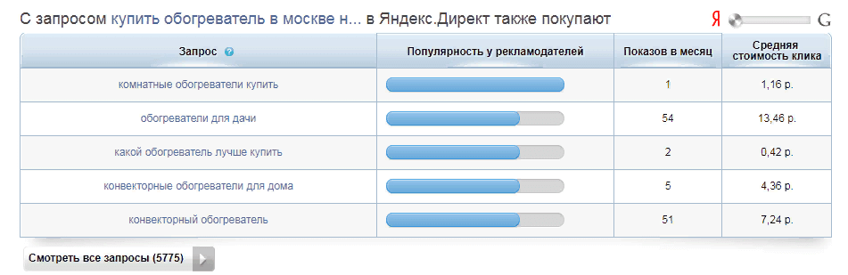 Допустим, что сайт планируется продвигать по запросу «купить инфракрасный обогреватель». Два значения из формулы у нас есть — это количество запросов и цена за клик. Осталось узнать CTR позиции.