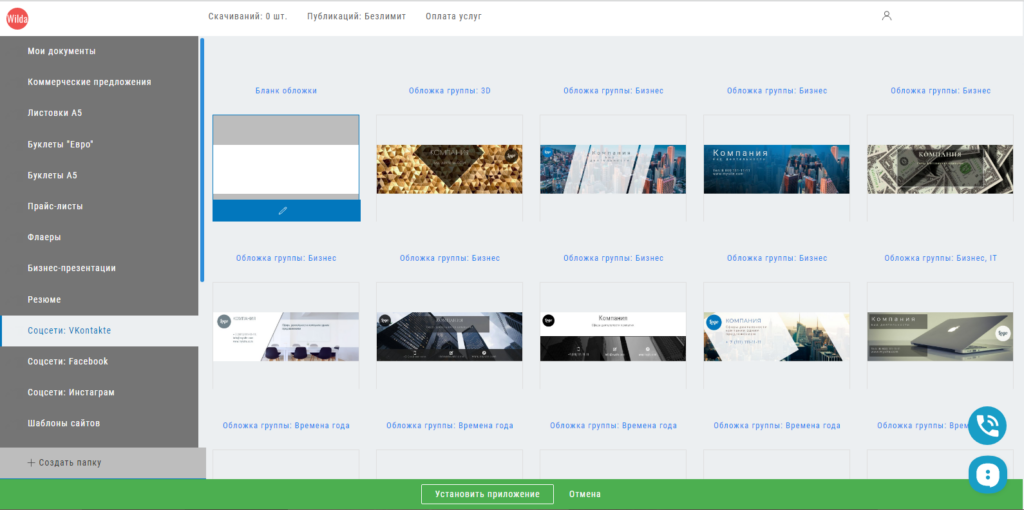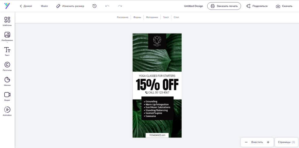 Российский онлайн-конструктор с функционалом, направленным в первую очередь на создание макетов печатной продукции. Также позволяет работать с изображениями для социальных сетей. Скачивание доступно в JPEG, PDF,PNG, HTML. Интерфейс проще, чем в Canva, но имеются все базовые функции.