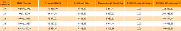 - Остаток задолженности сокращается быстрее, чем при АП. Например, по нашему условному примеру через 24 месяца осталось погасить 166 666,67 руб. при ДП и 186 914,82 руб. при АП. Почти на 20 000 руб. меньше. Поэтому при досрочном погашении вы внесете меньшую сумму, чем при оплате по аннуитету.