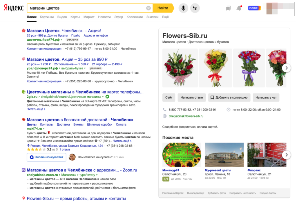 Недавно Яндекс предложил компаниям новый способ выделиться в поиске. Чтобы получить красивый большой сниппет с изображениями и контактами достаточно заполнить карточку организации в Яндекс.Справочнике.