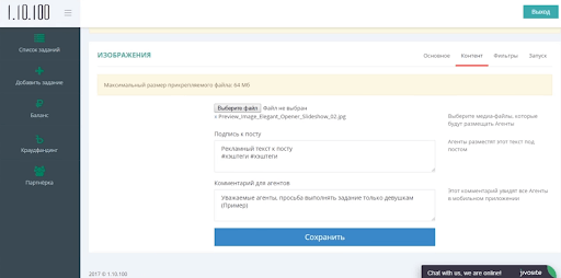 Рекламодателю предоставляется доступ к контролю выполнения задания, решение об оплате заказчик принимает сам.