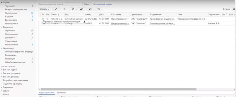 Позволяет легко работать с различными документами и договорами, проводить контроль исполнения обязанностей сотрудниками компании.