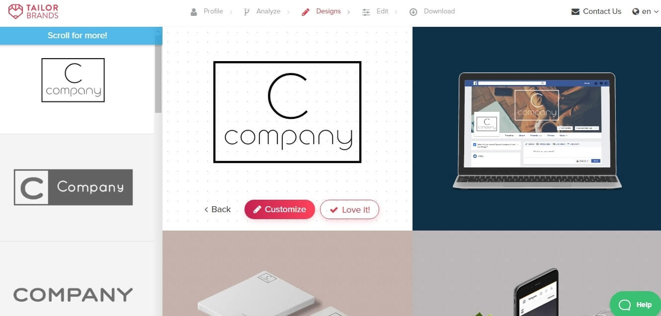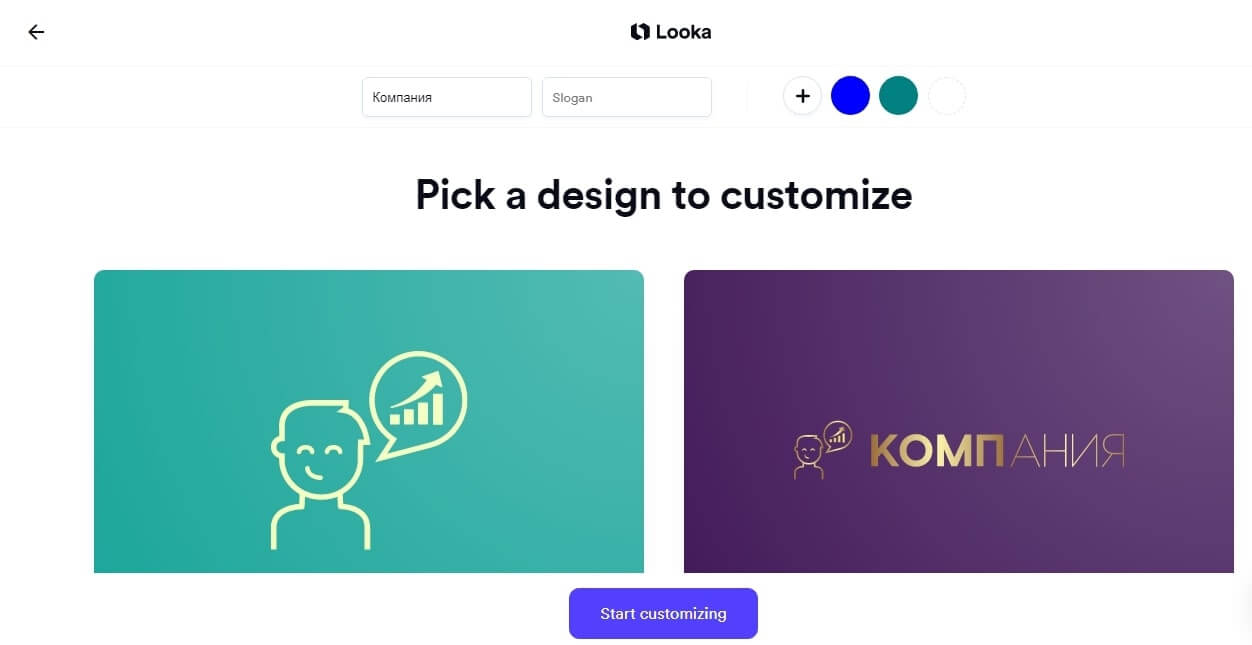 Looka Logo Maker. Простой англоязычный сервис, который позволяет подобрать понравившиеся варианты и предпочтительные цвета, после чего будет предложено несколько видов оформления. Их можно доработать в редакторе, после чего вы получите не только логотип, но и шаблоны оформления соцсетей и визиток.