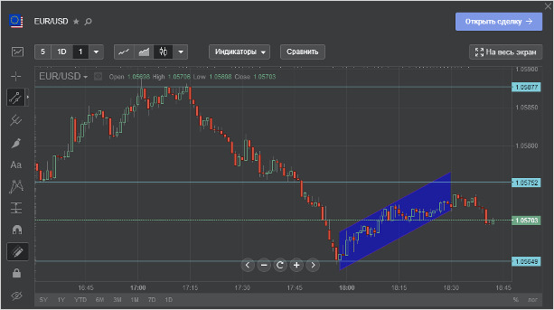 То есть для проведения технического анализа по определённой валютной паре мы должны именно открывать окно новой сделки. Прочертить линии или каналы на обычном графике невозможно, но при переключении с одной валютной пары на другую наработки не стираются.