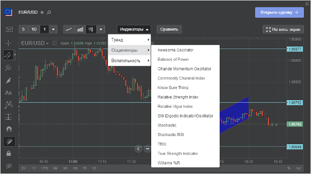 Графические инструменты присутствуют в полном их разнообразии, можно адаптировать график под абсолютно любые торговые стратегии.