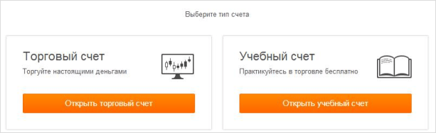 При регистрации мы можем либо сразу создать реальный счёт, либо сделать для начала учебный.