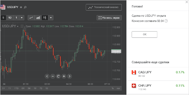 Мы просмотрели трёхминутный обучающий ролик по работе в терминале. Сделал вывод: компания завлекает пользователей возможностью торговать без знания базовых терминов. То есть вы можете не понимать вообще, что такое лот, кредитное плечо, спред, но при этом успешно торговать.