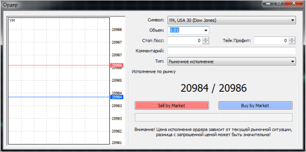 Итак, особенности проведения аналитики рассмотрели. Теперь перейдём непосредственно к открытию позиций. Понятий “лот”, “спред”, как мы уже говорили выше, нет. Вместо лота просто указывается объём покупаемых валютных единиц. Соответственно, если высвечивается 1 000 единиц валюты, сделка откроется минимальным объёмом в 0,01 лота. Разрешено открывать позиции и на 500 единиц, что весьма странно.