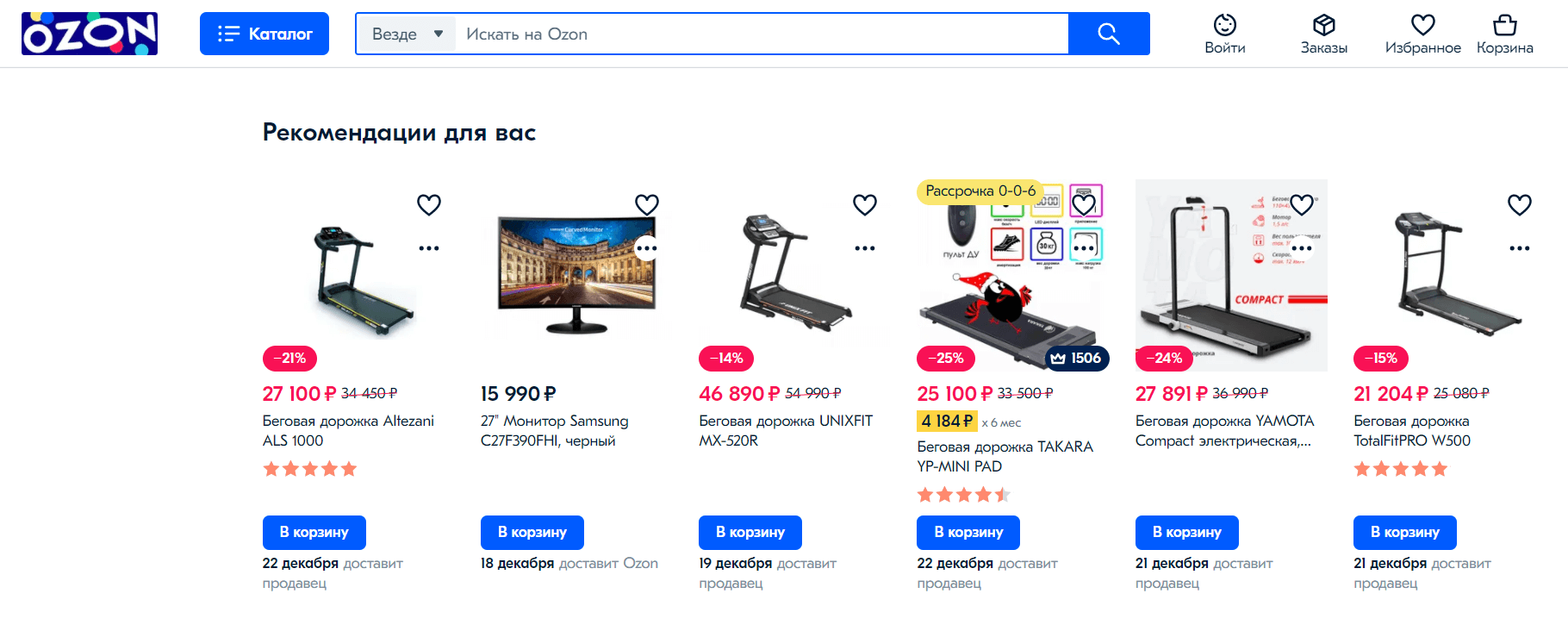 Рекомендации к товарам (“Похожие”, “С этим товаром покупают”) строятся на основе характеристик товара и данных о кликах и покупках.