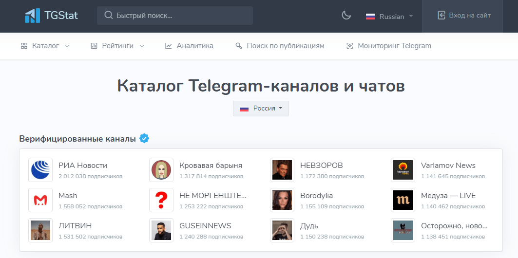 Tgstat – некоммерческий сервис с открытой статистикой, на котором собраны данные более 30 000 Телеграм каналов, из них около 10 000 – русскоязычные.