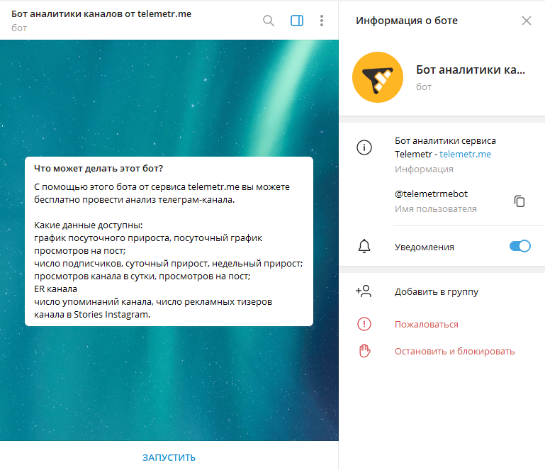 Статистические возможности самих Телеграм-каналов ограничены, потому для их полноценного анализа требуется использование сторонних сервисов или специально созданных для этой цели ботов.