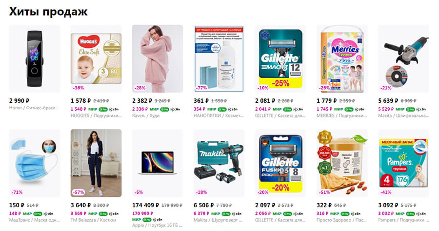 В Хитах продаж можно найти товары, которые пользуются спросом.