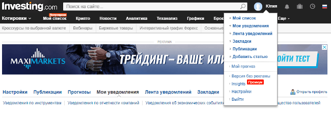 Услуга по настройке алертов в Investing.com абсолютно бесплатная. Чтобы ею воспользоваться, необходимо зарегистрироваться.