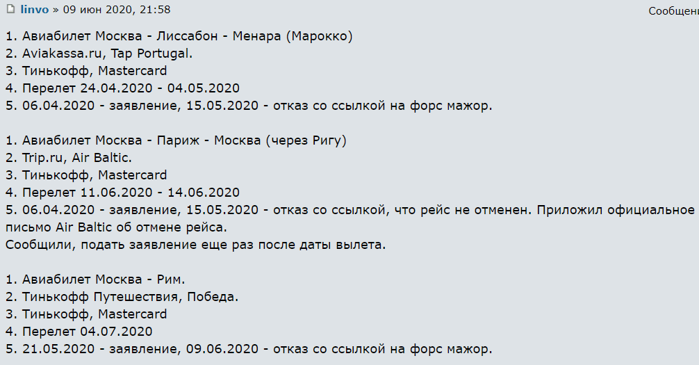 Несколько примеров из отзывов с крупнейшего форума о путешествиях, где собирают статистику по чарджбэку: