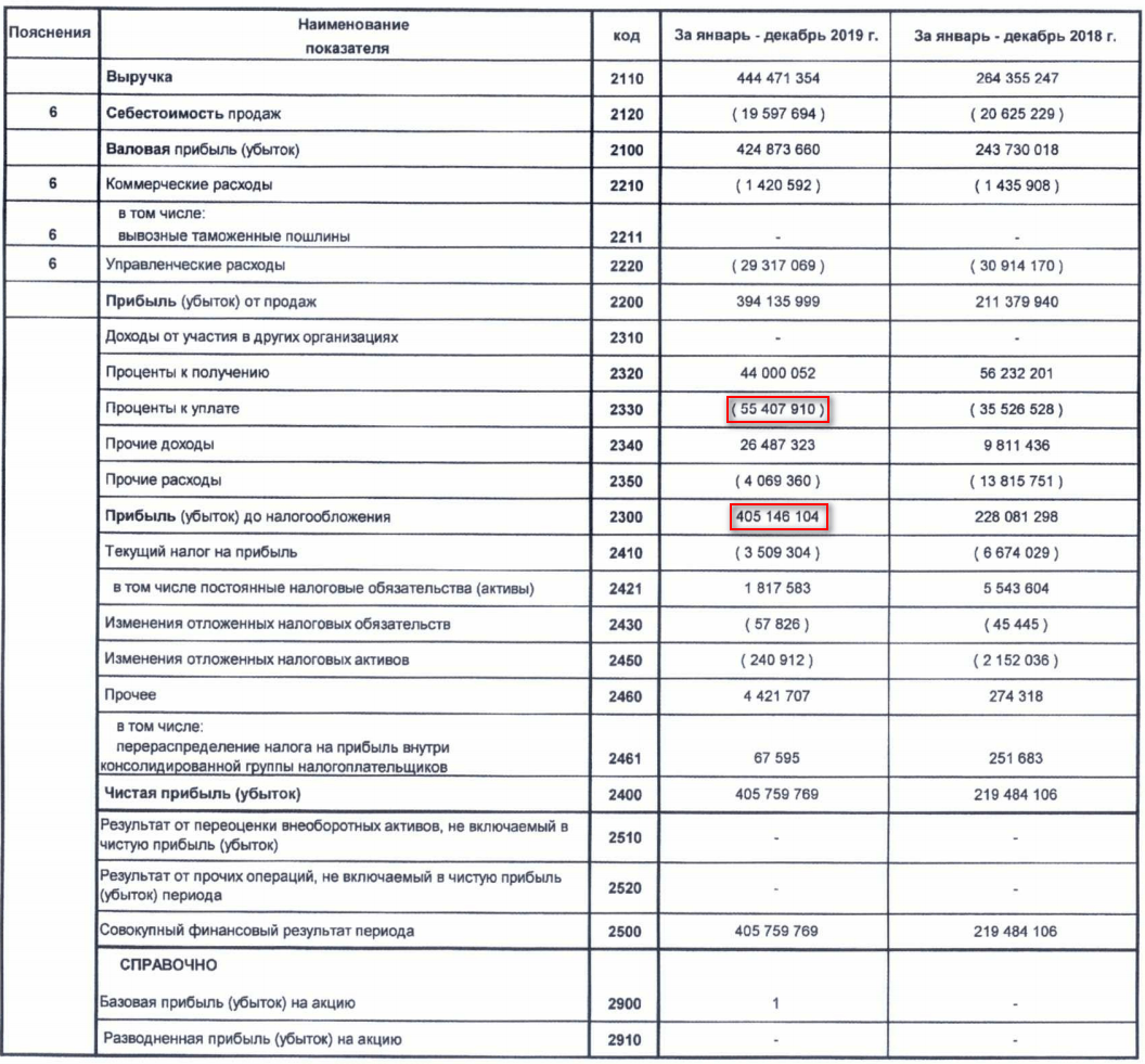 - Расчет по МСФО (Консолидированный отчет о прибылях и убытках за 2019 г.).