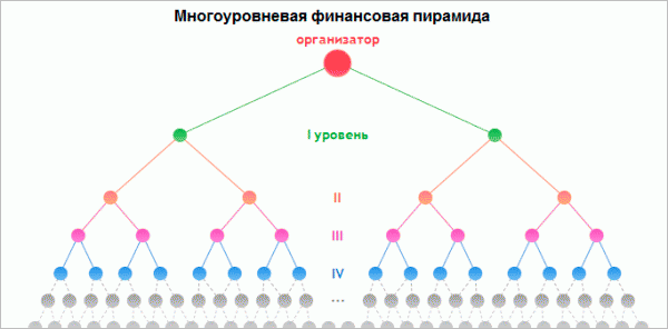 Финансовые пирамиды бывают одноуровневыми и многоуровневыми.