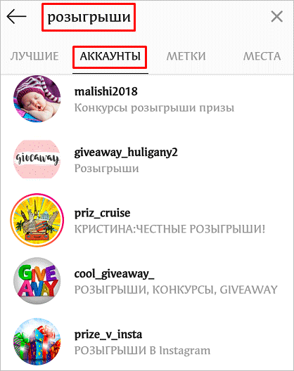 Если вас интересует, как стать спонсором такого Гива, то это довольно просто. Нужно найти организаторов и связаться с ними в Direct. Для этого можно ввести в поиск слово “розыгрыши” и посмотреть выдачу.
