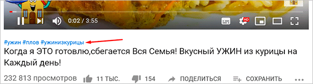Чтобы посмотреть похожие видео, можно просто кликнуть на хэштег.