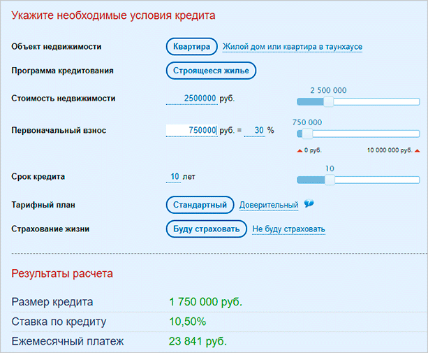 В банке Уралсиб более мягкие условия кредитования предоставляются заемщику, который покупает квартиру в новостройке. На период строительства дома банк в 2 раза снижает платеж по кредиту. Этот срок может быть от 1 до 2 лет. На сайте есть калькулятор, по которому вы можете задать параметры займа и рассчитать платежи до и после льготного периода.