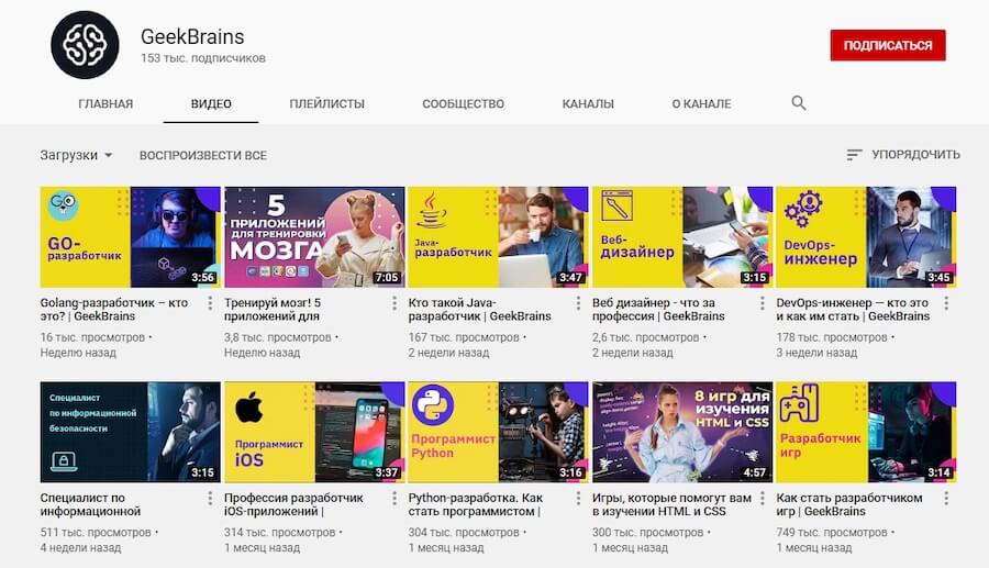 Образовательный портал для IT-специалистов GeekBrains публикует видеоролики в формате презентаций. Эксперты компании рассказывают об IT-профессиях и проводят открытые уроки по программированию. Это позволяет аудитории оценить подачу материала и принять решение о покупке платных курсов.