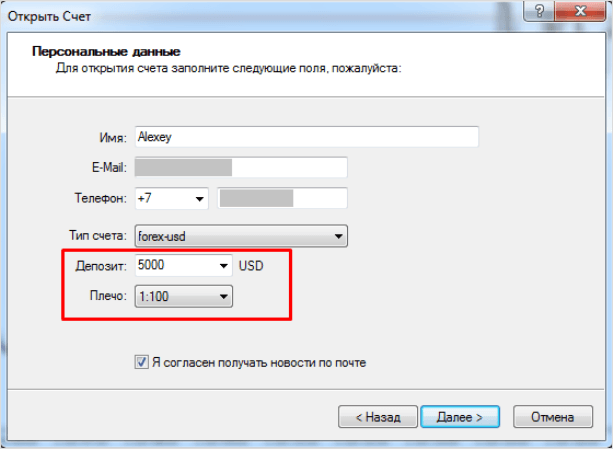 Разберём ситуацию на примере. Мы откроем новый демо-счёт на пять тысяч долларов с кредитным плечом 1:100, чтобы легче было считать.