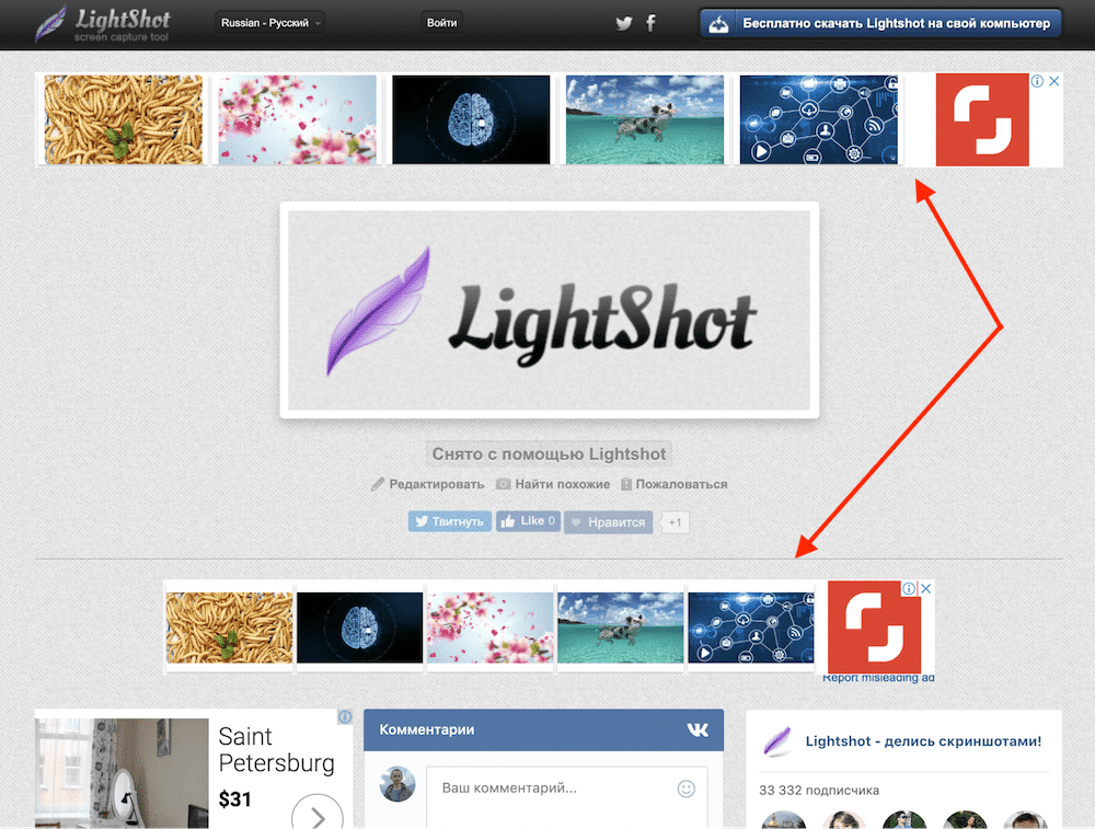 Или он даже может быть полностью бесплатным, но содержать рекламу. Вот для примера программа для создания скриншотов LightShot, которой миллионы людей ежедневно пользуются. Она бесплатная, но когда загружаешь скриншот в облако, он показывается с рекламой. Разработчики неплохо зарабатывают таким способом.