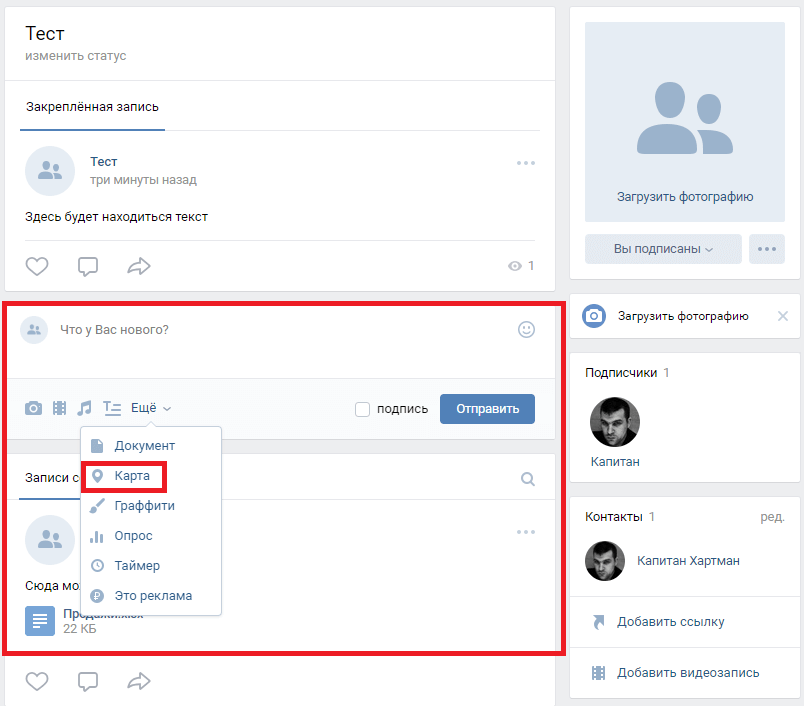 Как прикрепить карту к записи в ВК