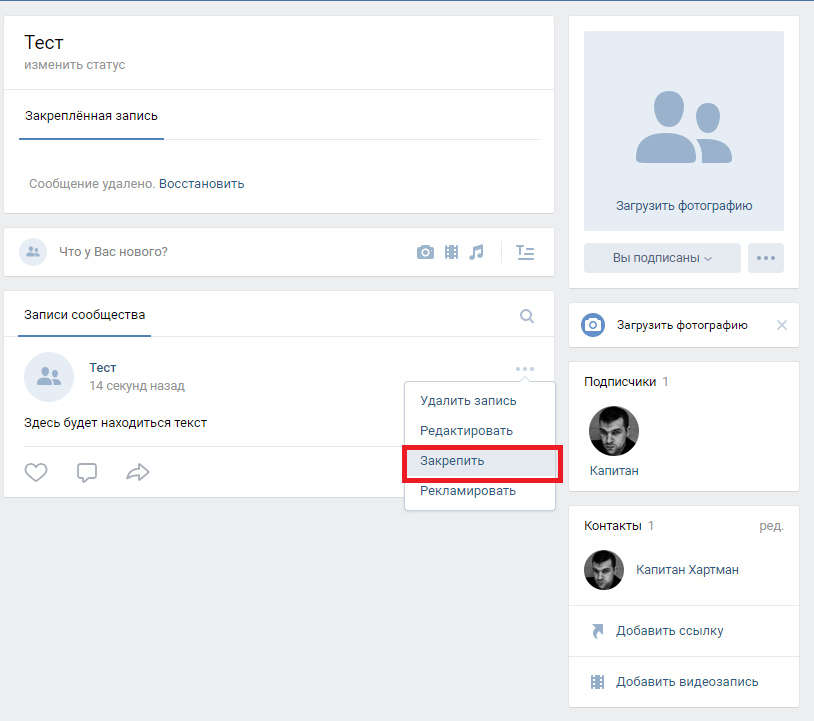 В каждой группе можно сделать закреплённый пост, который будет отображаться всегда вверху списка. Это очень удобно, если вы хотите разместить какую-либо информацию, которая должны бросаться первой на глаза для посетителей группы. Рассмотрим подробнее: