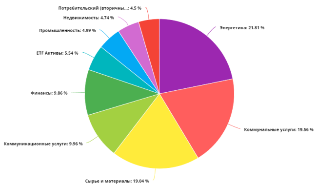 Аналогично следует действовать и по распределению по отраслям. Посмотрите на тот же портфель в отраслевом разделении.