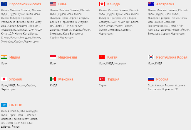 - Торговля с КНДР, Сирией и Ираном (6 физических лиц и 16 юридических).