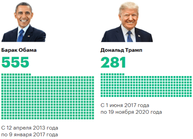 РБК публикует интересную статистику по количеству физических и юридических лиц, внесенных в санкционные списки США в периоды правления Б. Обамы, Байдена и Д. Трампа.