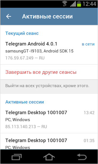 Для Андроида это вкладка активные сессии.