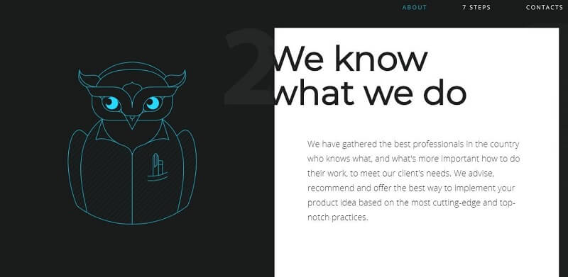 Очень интересно это реализовано на лендинге компании 7Devs, студии по разработке мобильных приложений. Каждое из преимуществ вынесено на отдельный экран с интересной иллюстрацией и подробным описанием.