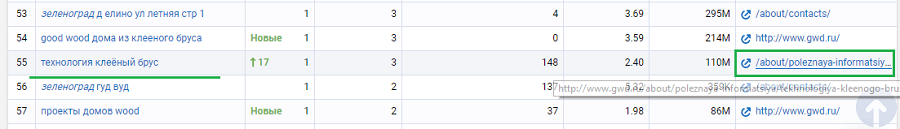 Кликаем на него и видим весь перечень ключевых слов, по которым продвигается эта страница.