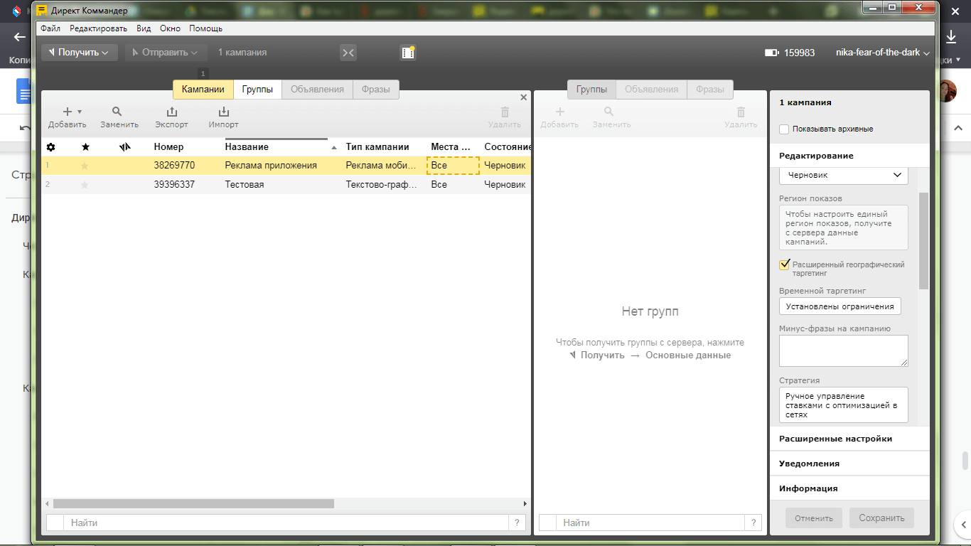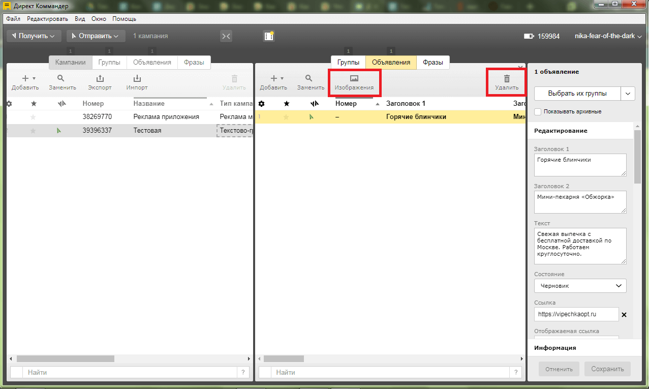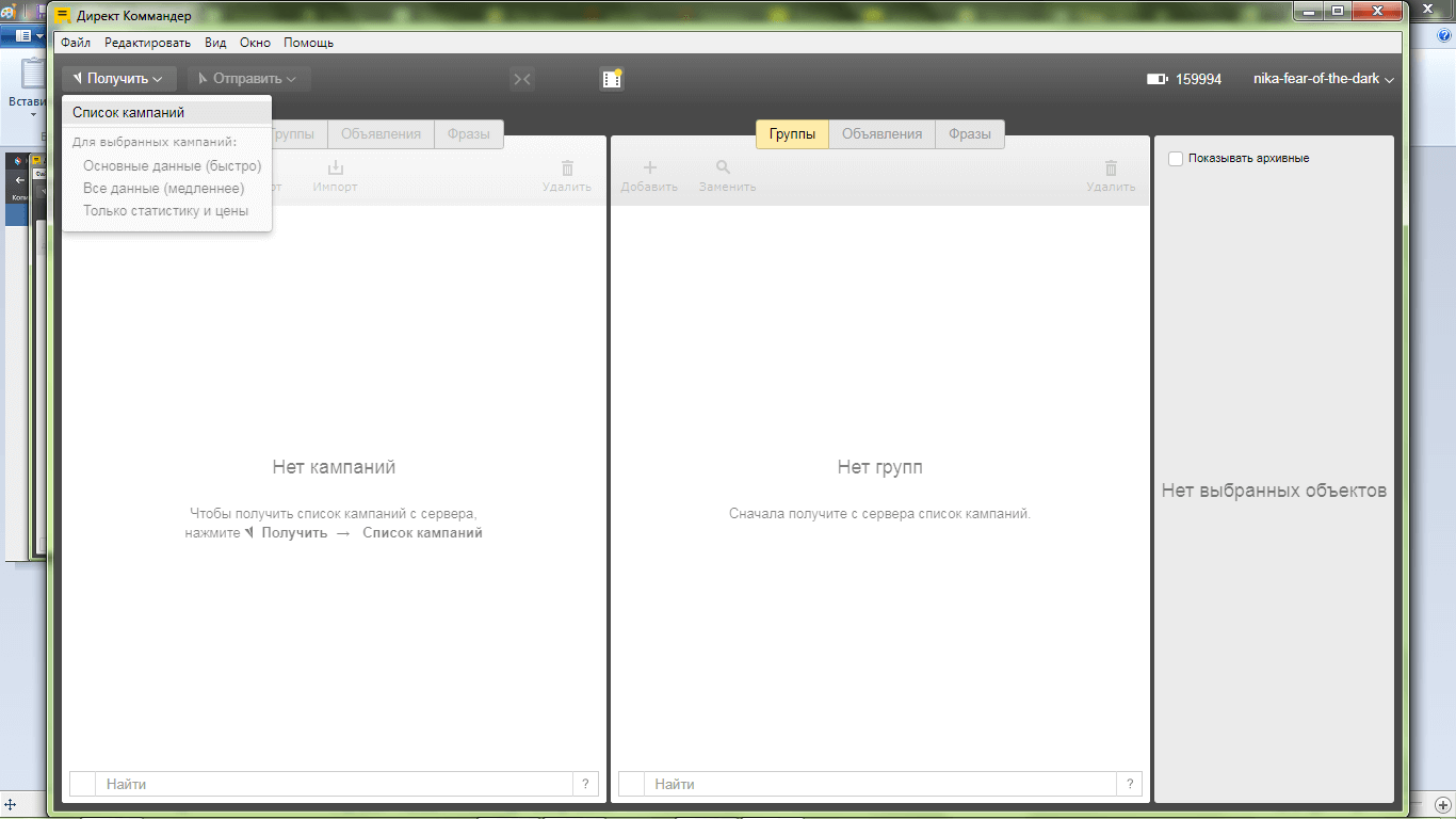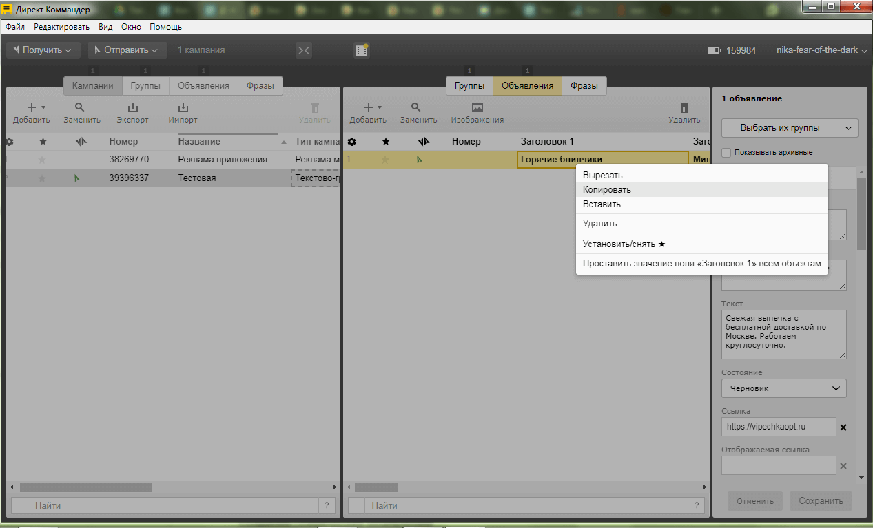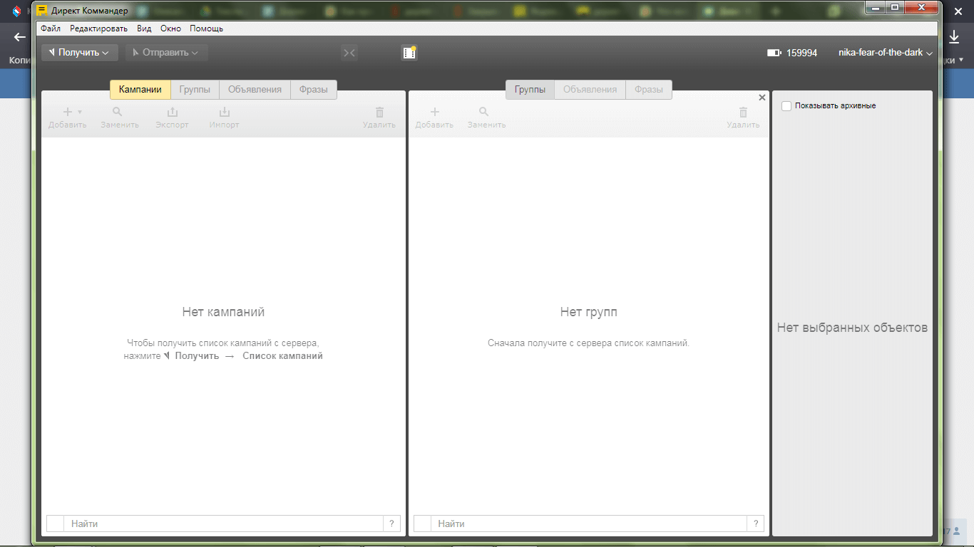 Давайте теперь детально разбираться, как работать с рекламными кампаниями в Директ Коммандер.