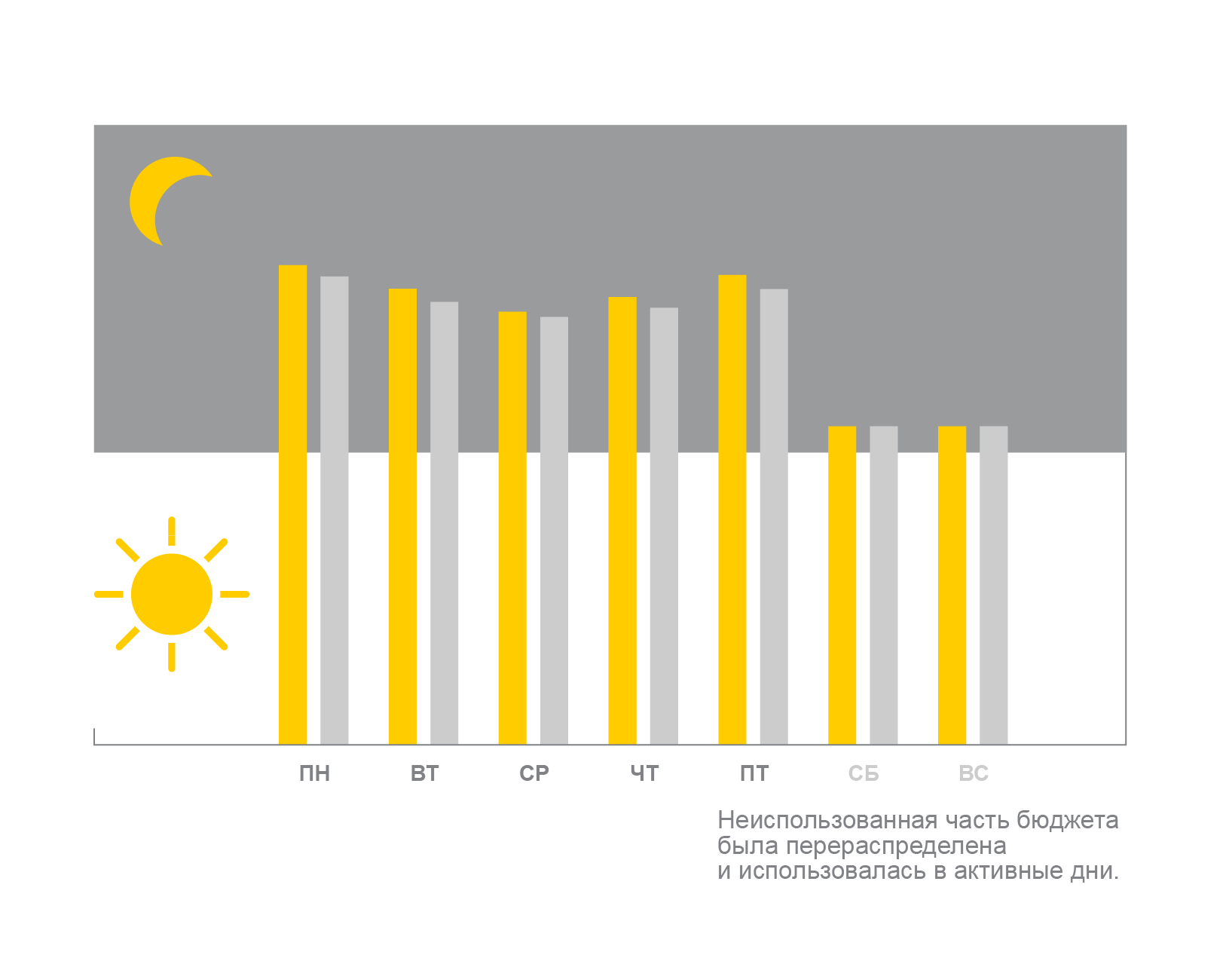 Заметив это, система будет переносить неиспользованные в субботу и воскресенье средства, чтобы задействовать их во время высокой активности в другие дни. При этом, средний расход в день по прежнему не будет превышать установленного лимита в 1000 рублей.