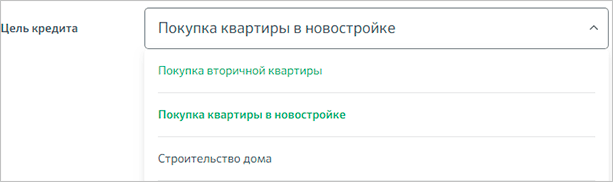 Настройки калькулятора позволяют задать цель кредита.