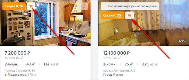 Красной стрелкой показала специальный значок, который означает, что квартира пока не рассматривается другими заемщиками, и вы можете договариваться с продавцами. При нажатии на конкретное объявление откроется подробное описание квартиры, дома, района и т. д. Все это с многочисленными фотографиями.